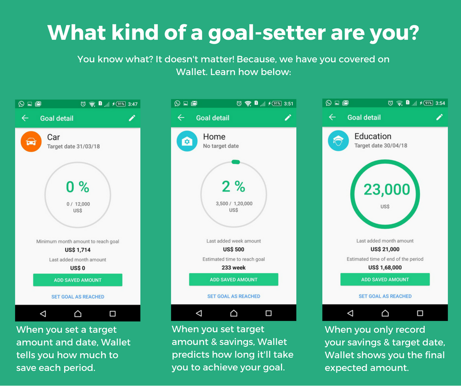 It’s not just the matter of setting goals. Studies say that nearly half of us make New Year’s resolutions, but only 8% of us end up achieving them by the year’s end. So it’s not just about making up your mind to do something. It’s also about how you get there. To achieve your goals, you need to have a simple system that works for you. Goals on Wallet will not just let you set goals, but also allow you to see them through and achieve them! We swear by flexibility.